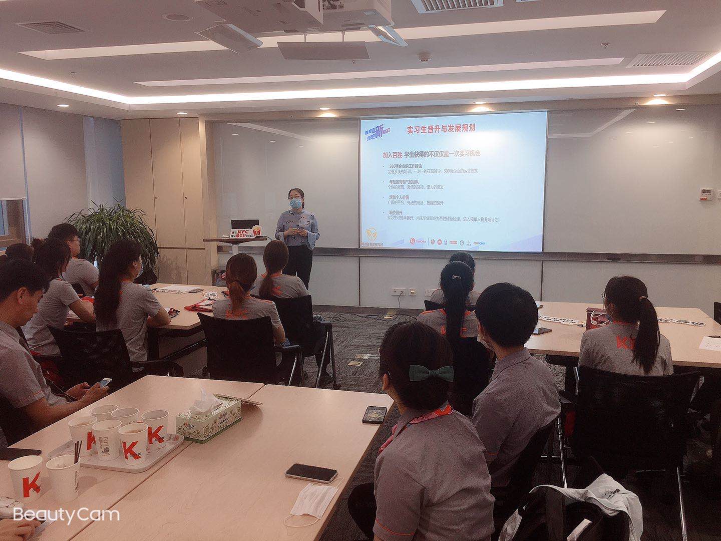 李国鹏经理为同学们讲解了“实习生晋升与发展规划“,使同学们了解自己在公司目前工作内容,将来的工作发展、职业规划等内容,虽然是实习生,也是从学校到社会过渡的重要阶段,不打无准备之仗,提前做好职业规划,为自己的职场开启一个美好的开场。