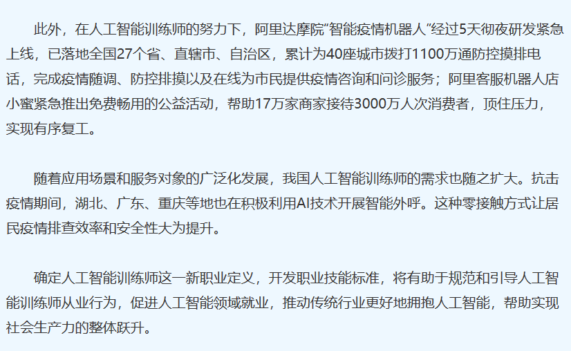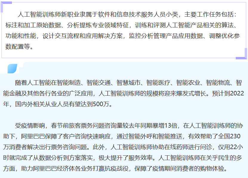【就业创业指导】AI战“疫”崭头角——“人工智能训练师”新职业正式发布