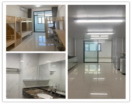 3、 住宿条件:6人/间;彩电、空调、衣柜、热水器、卫生间、洗衣房、24小时热水。住宿费用为50元/月,从工资中扣除。