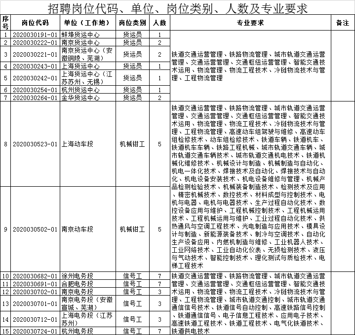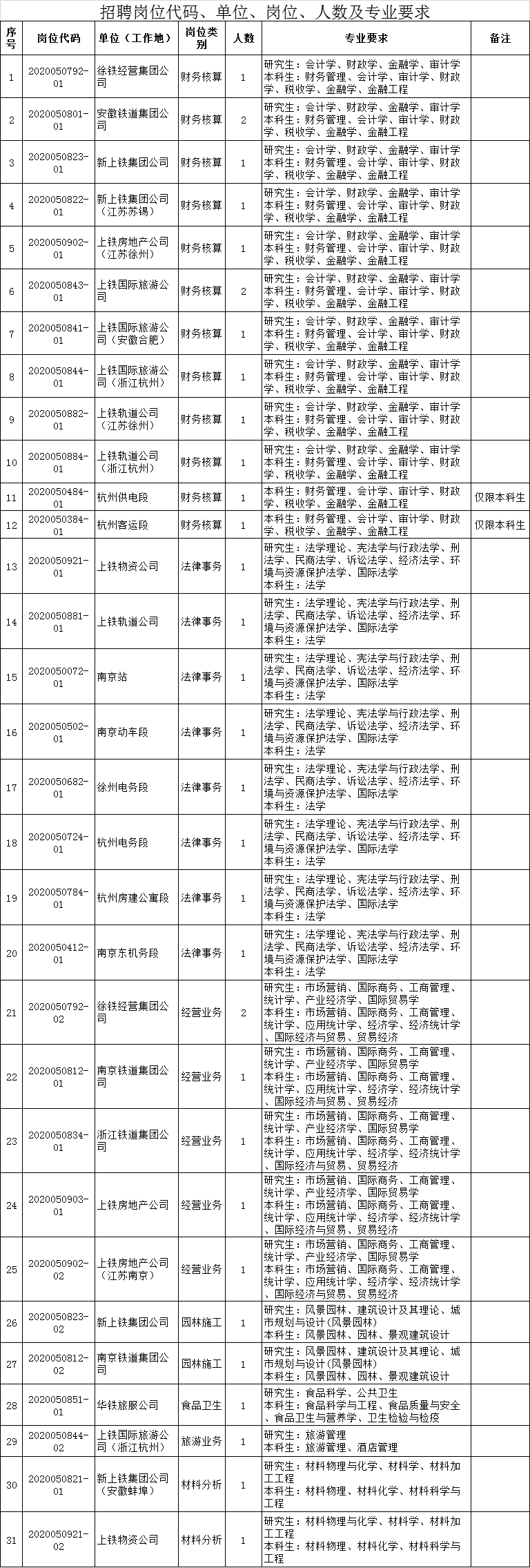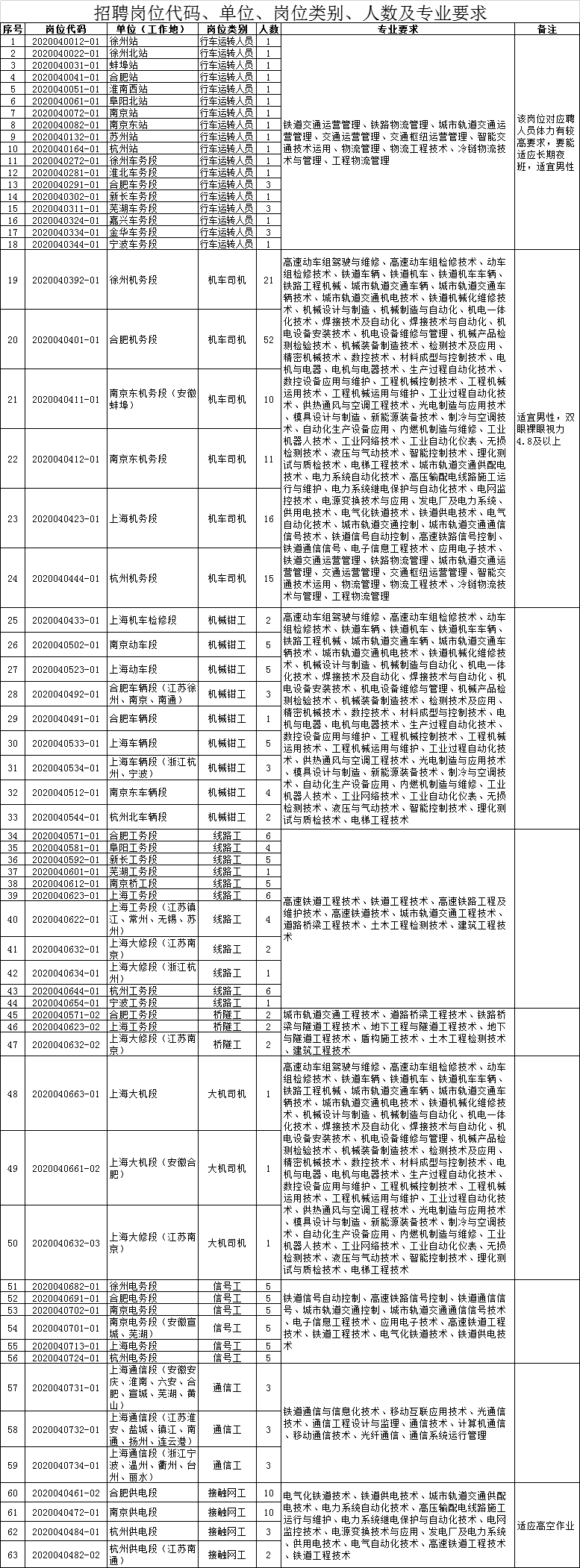 中国铁路上海局集团有限公司招聘2020年毕业生公告五(本科及以上学历)(34人)