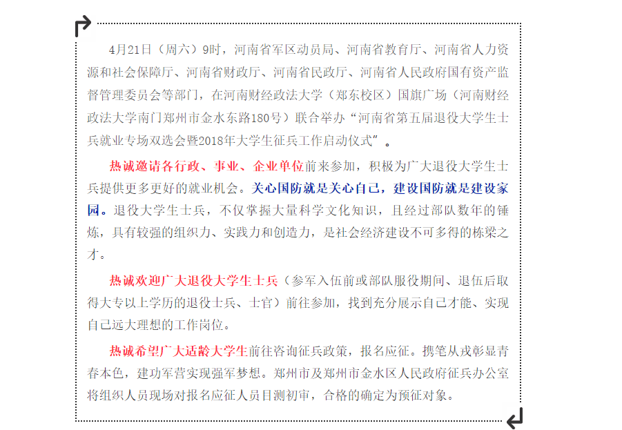 河南省第五届退役大学生士兵就业双选会邀请函
