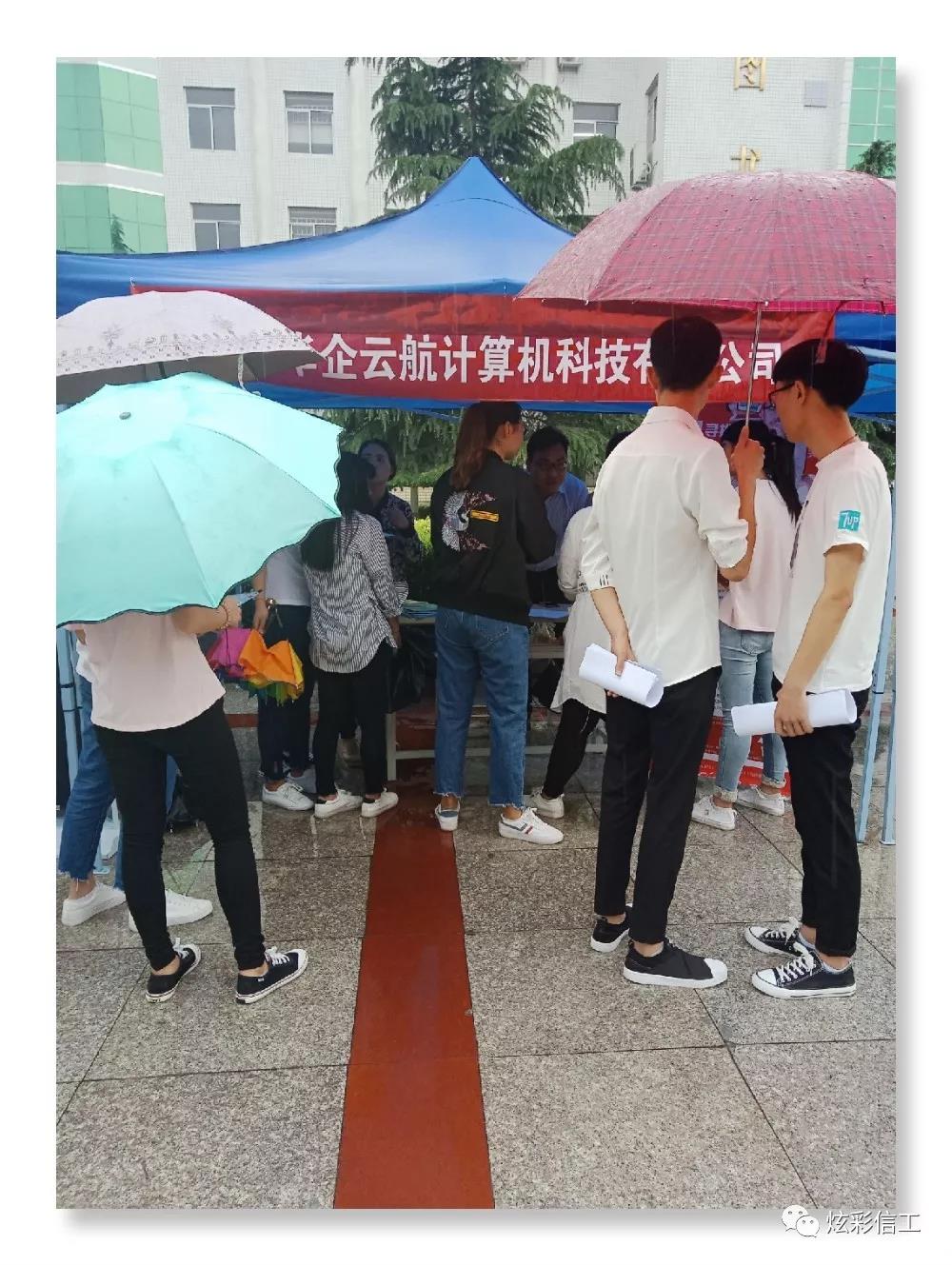 招聘会当日,虽然天公不作美,天空中飘着毛毛细雨,但是却丝毫不能影响19届毕业生应聘的热情,同学们都手持自己精心准备好的简历穿梭于人流之中,脸上洋溢着青春蓬勃的自信,积极与招聘人员交流,主动了解用人单位情况。我院领导以及各位辅导员也在细雨中积极走访了解,竭尽所能的为毕业生提供建议、热情的为他们答疑解惑。告诉他们放松心态,做好自己该做的,丝毫没有受到天气的影响,整个招聘会洋溢着青春、和睦的景象。