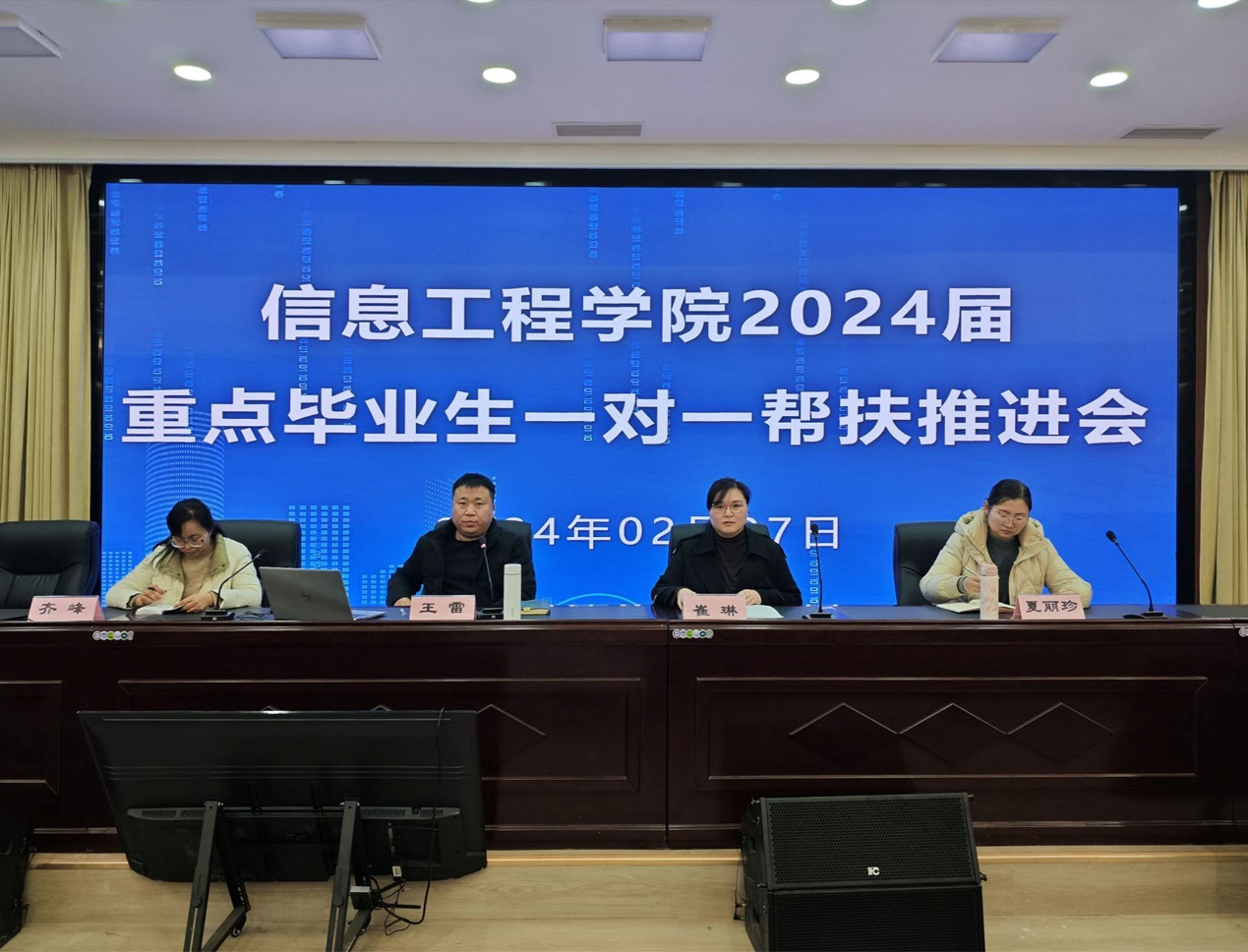 为深入贯彻落实河南省教育厅办公室转发《教育部办公厅关于进一步做好高校困难毕业生群体就业帮扶工作的通知》要求及学校毕业生困难群体就业帮扶工作要求,信息工程学院于2024年02月27日在郑州校区B楼二楼学术报告厅召开2024届重点毕业生“一对一”就业帮扶工作推进会。学院书记崔琳、院长王雷、副院长齐峰、副院长夏丽珍出席会议,学工、团总支、党政办科室负责人以及2024届毕业班辅导员参加本次会议。会议由副院长夏丽珍主持。