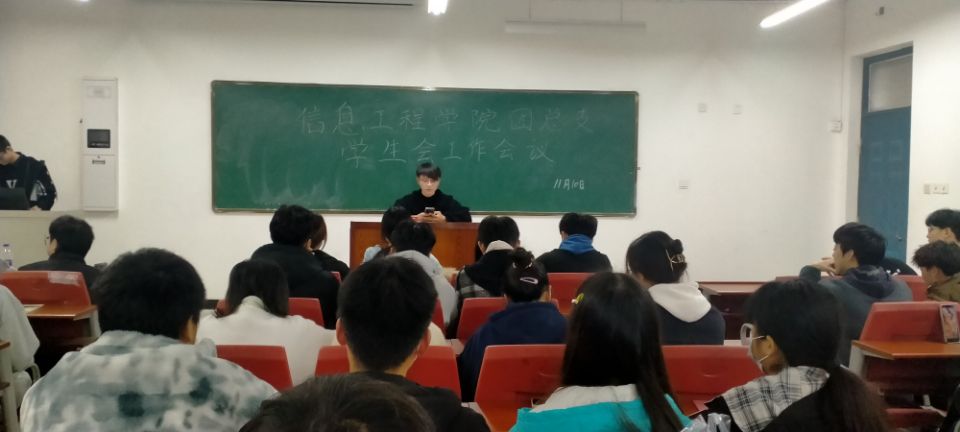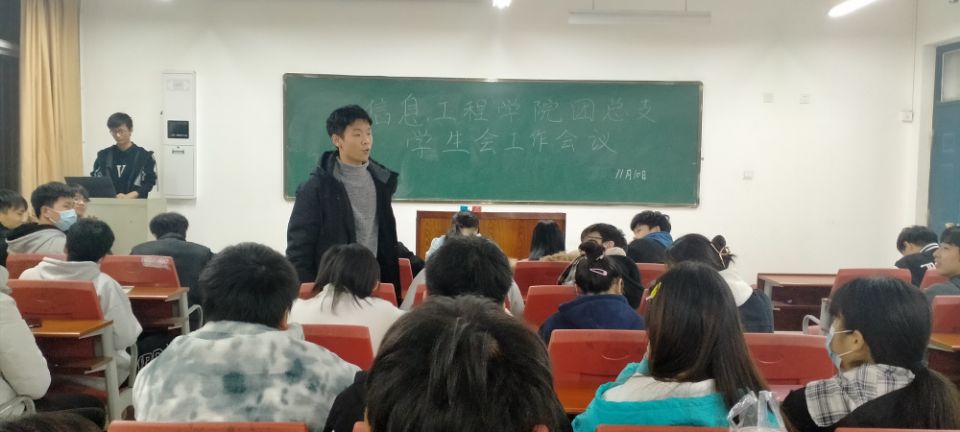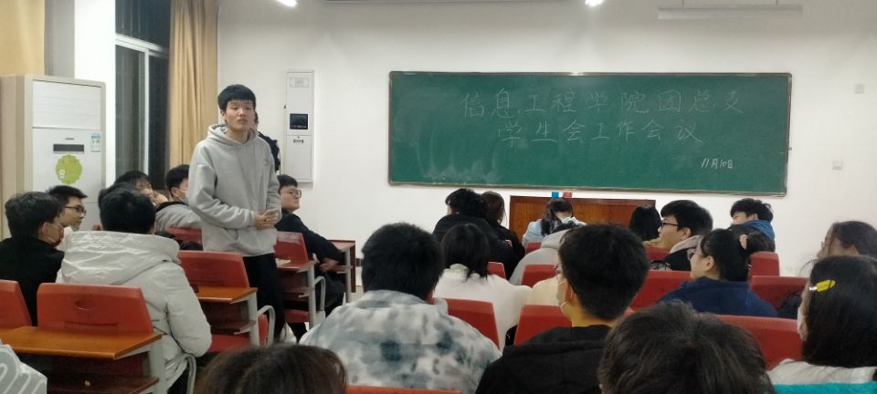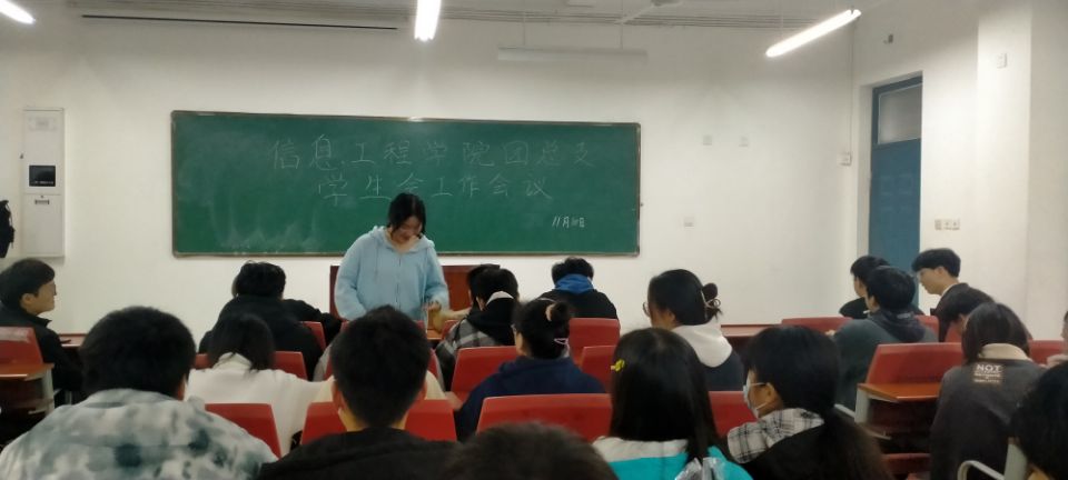 为了确保信息工程学院东校区学生会各部门的工作顺利进行。2021年11月10日晚上六点于教学楼102教室召开了信息工程学院第一次团总支学生工作会议。本次会议由主席团主席王斌主持召开,学生会全体成员准时参加。