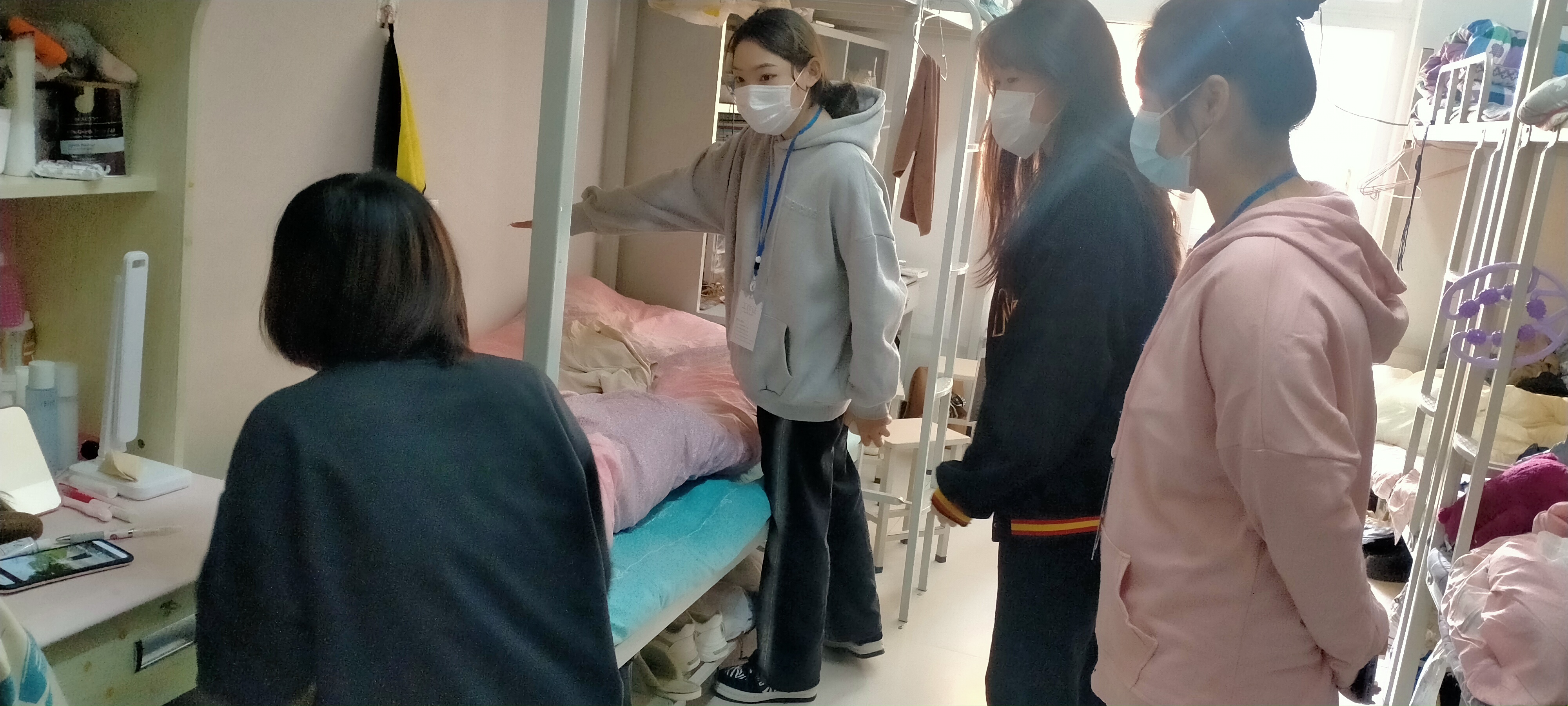 信息工程学院学生会生活部干事认真负责、亲切礼貌,给同学们带去了亲切的慰问:询问同学们是否适应新环境、关心同学们的饮食起居,反复叮嘱她们要增强安全防范意识,保持室内清洁以及日常通风,营造一个积极健康的宿舍文化,让同学们切实感受到了来自学院的殷切关心,进一步拉近了与同学之间的距离。