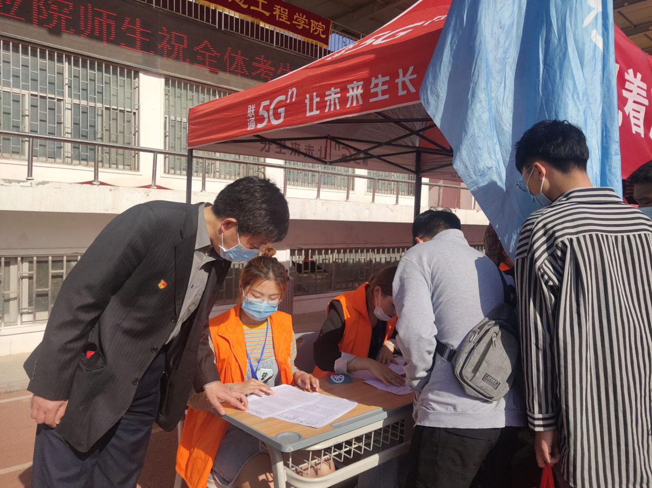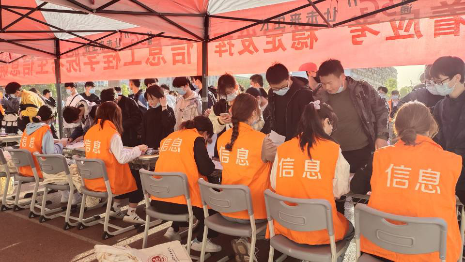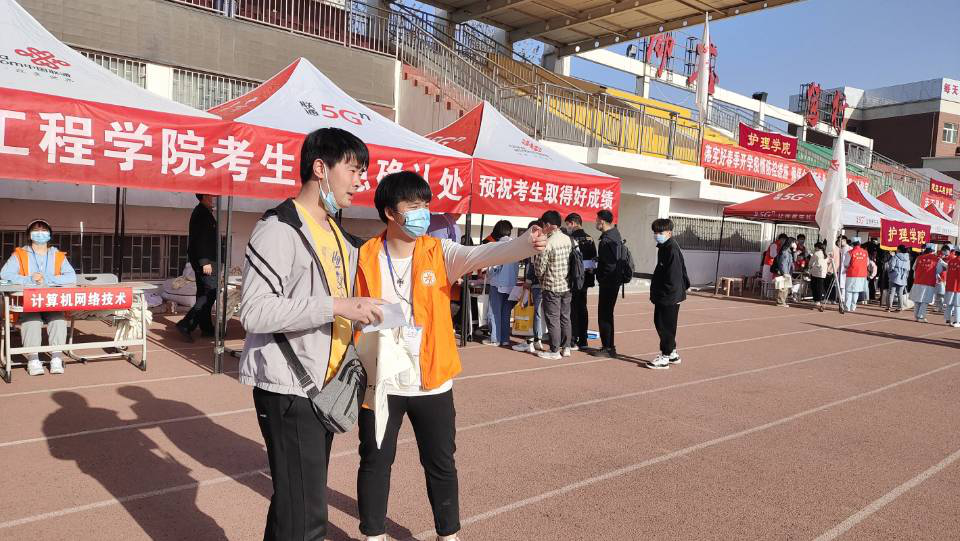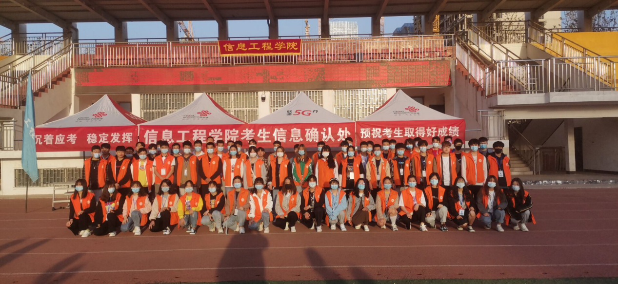 为优化服务,尽显信息工程学院靓丽风采。信息工程学院党总支书记楚斌、院长王雷以及数名教师、团学会成员、积极分子在校园内设立信息工程学院考生信息确认处,为考生提供服务。
