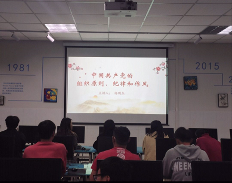 为扎实开展好“不忘初心、牢记使命”主题教育,增强入党积极分子的组织性纪律性,加深对党的认识。2019年11月14日晚,信息工程学院党总支学生第一党支部书记杨明杰在学校E421为18级入党积极分子讲授了以《中国共产党的组织原则、纪律和作风》为主题的生动党课。