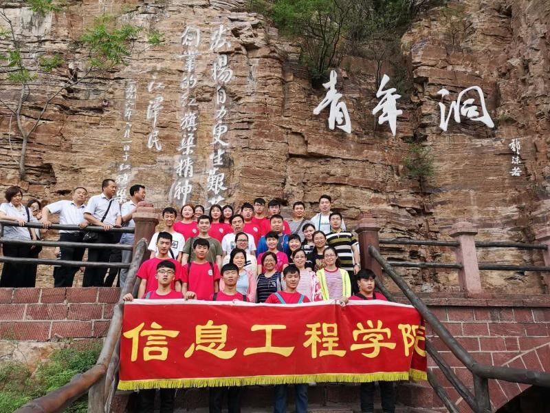 为弘扬自力更生、艰苦奋斗的红旗渠精神,加强爱国主义教育,充分发挥党员干部的先锋模范作用,2018年5月12日,信息工程学院党总支组织全体教师党员及优秀学生入党积极分子30人赴河南省林州市革命传统教育基地——红旗渠考察学习。5月12日清晨,我们登上了去林州的大巴。窗外晨雾缭绕,车内暧意融融。全体成员重温了考察学习注意事项,随队领导也再次明确了此行的目的和要求。车行四小时后,我们来到了此行的主要目的地——林州市红旗渠。
