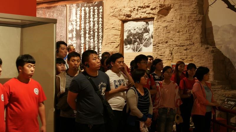 怀着崇敬的心情,我们走进了坐落在总干渠分水岭上面的红旗渠纪念馆。在瞻仰一幅幅珍贵的历史照片,目睹一件件简单而又原始的修渠工具后,我们的心灵被深深地震撼着。红旗渠纪念碑庄严矗立,似乎也在无声地述说着当年林州人民十年如一日、一钎一镐在悬崖峭壁上开凿红旗渠的忘我奋斗精神,而一张张珍贵的历史照片则讲述着上个世纪60年代林县人民战天斗地的那些难忘的岁月。我们应该铭记,在红旗渠的修建过程中,共有81位干部群众献出了自己的宝贵生命。