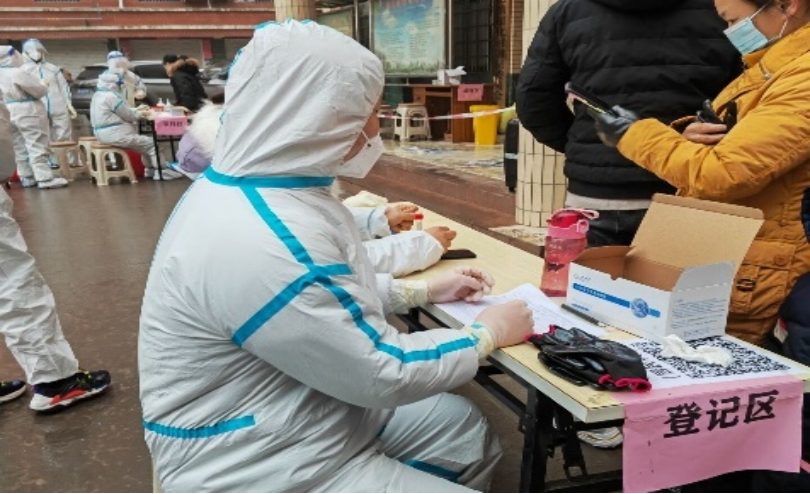 2022年1月5日,河南应用技术职业学院信息工程学院计算机2003班的杨洺源同学,在如今疫情的严峻形式下,他积极响应中央号召,志愿加入超化党群服务中心志愿者团队,为了当地疫情防控工作的顺利开展,他穿上防护服,协助社区医护人员进行核酸检测登记工作,为防疫工作奉献出了自己的一份力量。