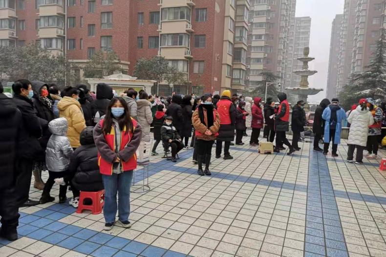 河南应用技术职业学院信息工程学院网络2103班的宋梦丹同学,在得知所在县出现了两处中风险地区时,积极响应号召,投身于本人所在风险社区志愿服务的团队中,分别于12月31日、1月2日、1月6日为当地群众在做核酸时帮助医护人员进行核算信息采集,维护现场秩序,助力当地疫情防控工作的进一步开展。