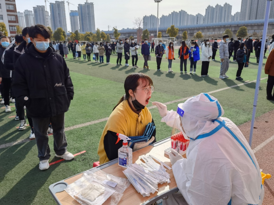 我院的同学们在接到通知后提前做好准备,按照防疫要求,让各班班长在指定位置整理队伍,清点各班人数,带好口罩,各班成员在学生会成员的引导下分批前往核算检测处进行采集工作。在做好了充足准备的情况下,新学期第一次核酸检测工作有条不紊的逐步开展进行。