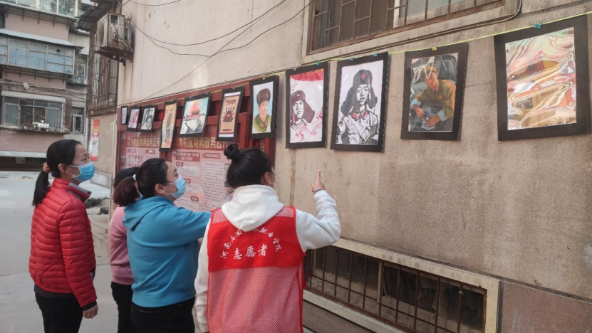 画展现场,信息工程学院志愿服务团队在社区工作人员的帮助下,按照各自分工,有条不紊地开始布置工作。我院志愿者主动、耐心地为前来参观的社区群众讲解作品中所传达的精神含义,宣传、弘扬雷锋艰苦朴素、助人为乐的大爱情怀,在春天播下雷锋精神的种子,让其生根发芽,发扬光大。