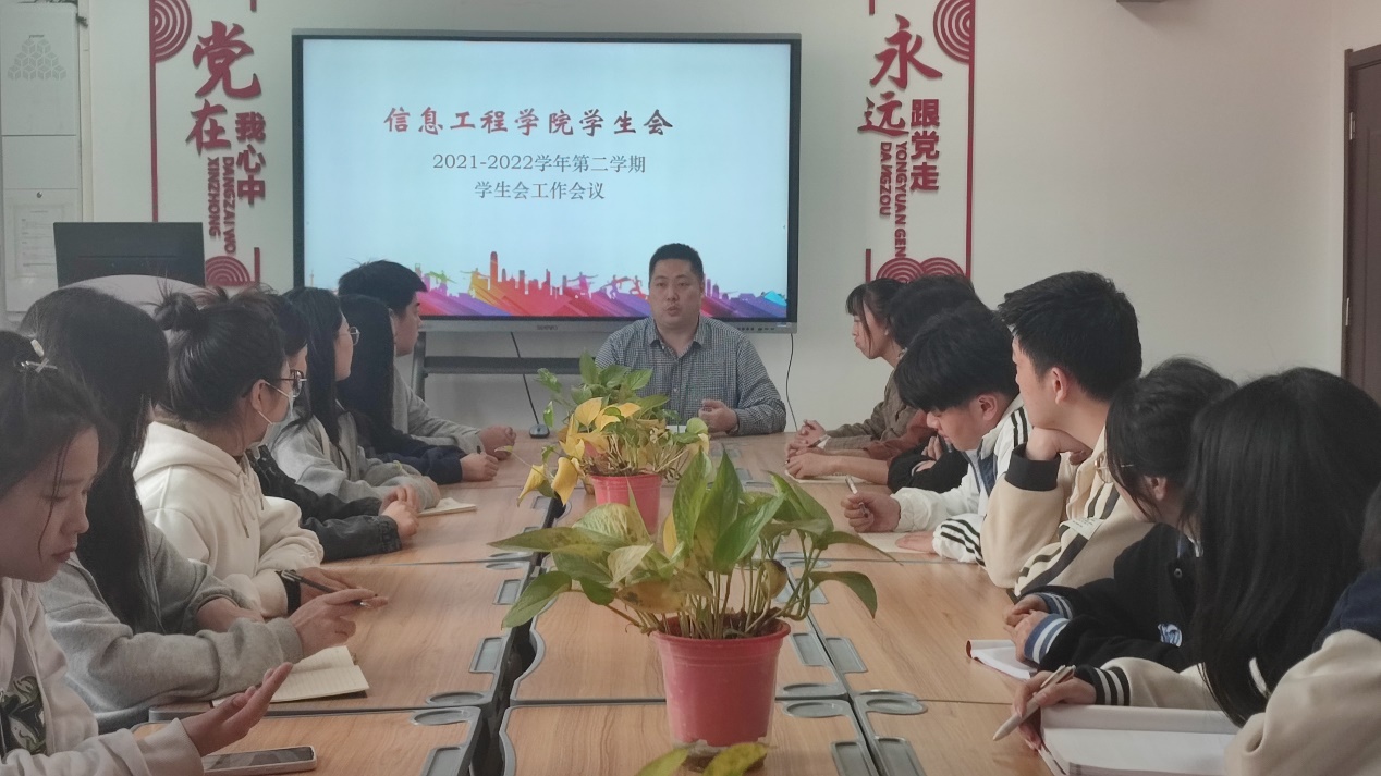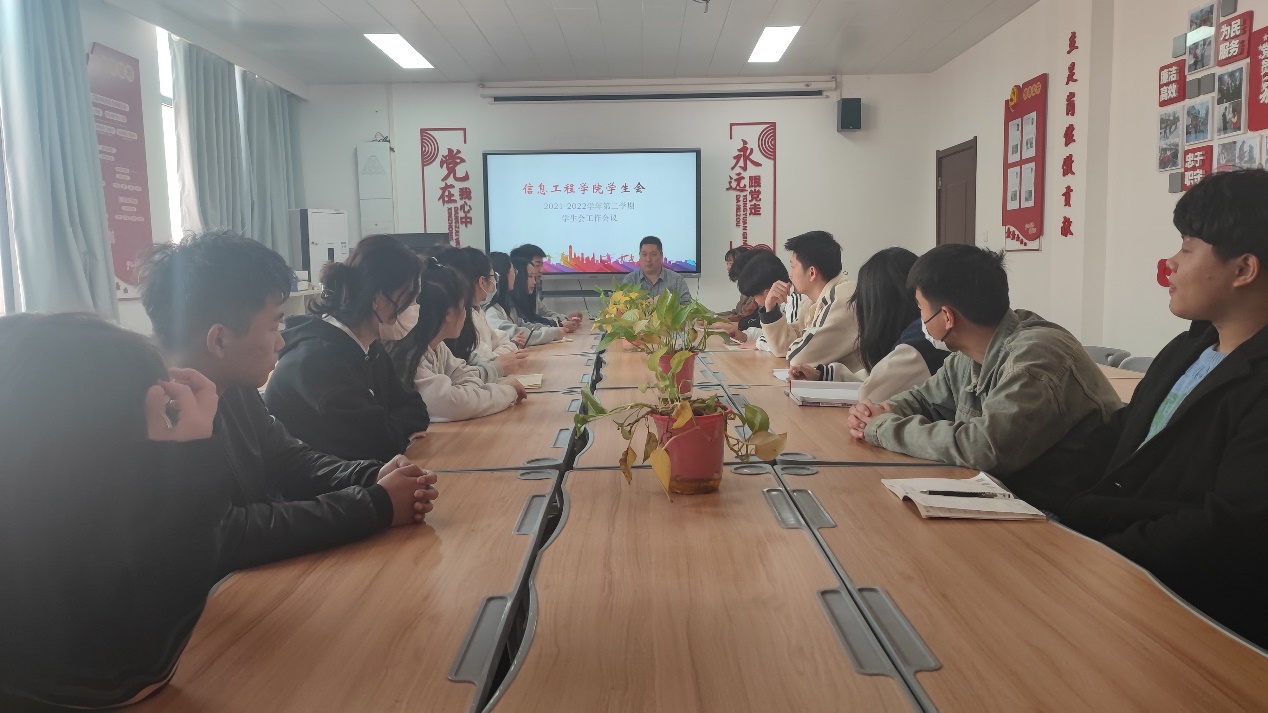 为提高学生干部的责任感,勉励学生干部的积极性,力争举办有特色、有影响的学院活动,筹划新月活动内容,2022年3月9日中午12时30分,信息工程学院于A514党员活动室组织召开学生会干部会议。本次会议由团总支书记赵源主持,学生会全体干部参与。