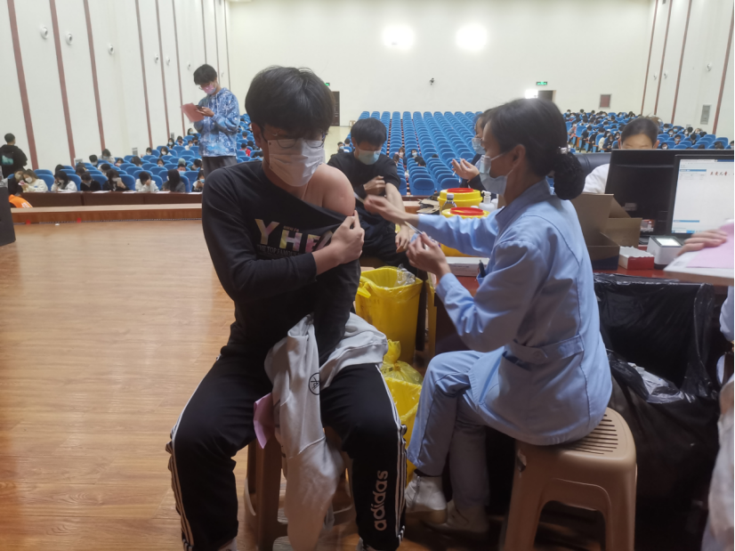 我院高度重视此次新冠疫苗接种工作, 精心组织,精准动员、提前核对接种名单,在学生会成员的组织和引导下,同学们佩戴口罩、有序排队,在大家的相互配合下,整个接种流程顺畅、井然有序。