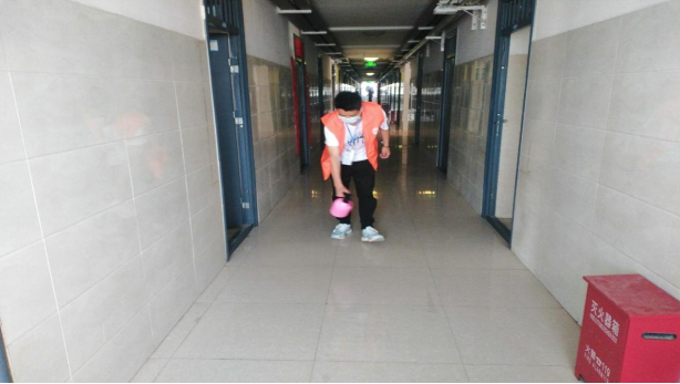 我院志愿者们合理分工,相互配合,带着配置好消毒液,对宿舍地面、洗手台、门把手等区域进行全面消杀,确保全覆盖、零死角。同时提醒同学们注意个人卫生和宿舍卫生,宿舍要经常进行通风,领取的快递要拆封消毒后再带入宿舍,要时刻注意佩戴口罩,减少病毒传播的可能性。
