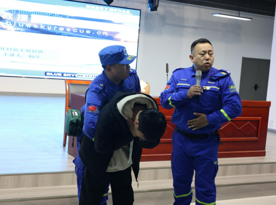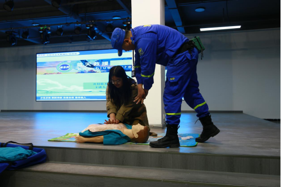 本次活动采用“理论讲解+现场演示+实践培训”的形式,为学生讲授应急安全急救知识技能。讲座主要围绕海姆利克急救法和心肺复苏详细展开了讲解,主讲老师邀请现场学生进行演示“海姆立克”急救法的具体实施操作细节,接着利用仿真人讲解了心肺复苏的现场操作过程,包括确认四周施救环境,判断伤者意识状态,确认伤者呼吸心跳,检查口腔是否有异物、打开气道方式,人工呼吸操作及胸外心脏按压的正确做法。同学们在讲座过程中,跟着现场学习,切身感受,熟悉急救步骤和要领,极大的提升了同学们的应急处理能力。