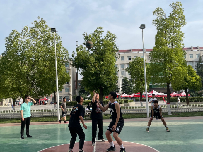 伴随着一声令下,师生友谊赛正式开始。比赛中,参赛师生奋力拼搏,充分展示自身风采。相比输赢,更重要的是和老师、同学们共享运动比赛的激情,无关胜负,无关得分,师生们尽情奔跑,用极高的专注度投身于比赛之中。传球、投篮、上篮,每个动作都充满激情和力量,展现出信息工程学院师生良好的精神面貌和风采。