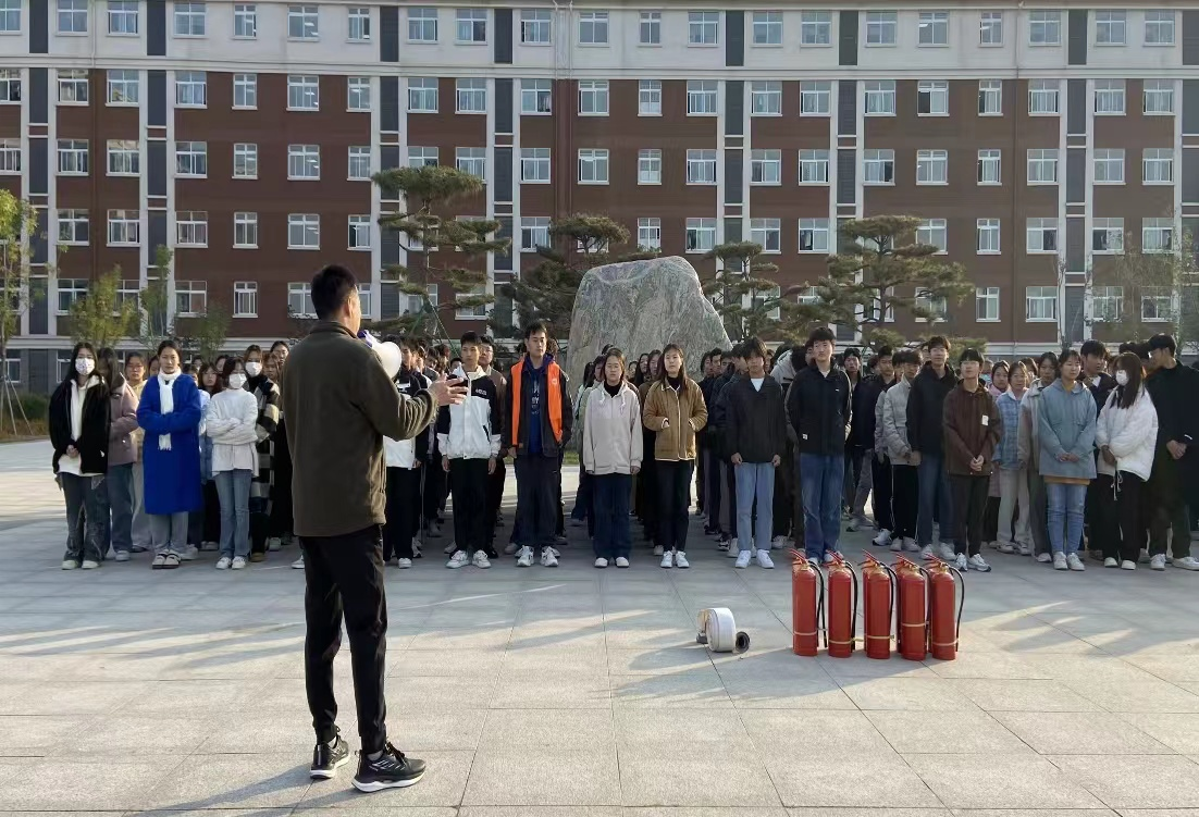 培训中,讲解员向同学们介绍了灭火器的种类,细致讲解了灭火器及消防栓的正确操作流程,并让大家亲自动手,切实掌握灭火器材的应用。