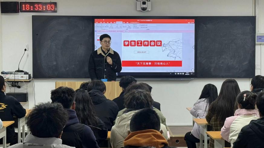 为进一步加强学院学生干部队伍建设,完善学生组织运行机制,充分发挥学生干部在学生管理中的先锋模范作用,增强学生干部队伍的凝聚力、战斗力、向心力,强化学生干部在学生自主管理中的重要作用,树立良好风气,提升学生工作质量和水平。2024年3月7日,信息工程学院于郑州校区(教室)、开封校区c410召开“学生干部工作会议”。团总支书记冷月、及全体学生干部出席参加会议。本次会议由常昆主任、蒋欣哲主持。