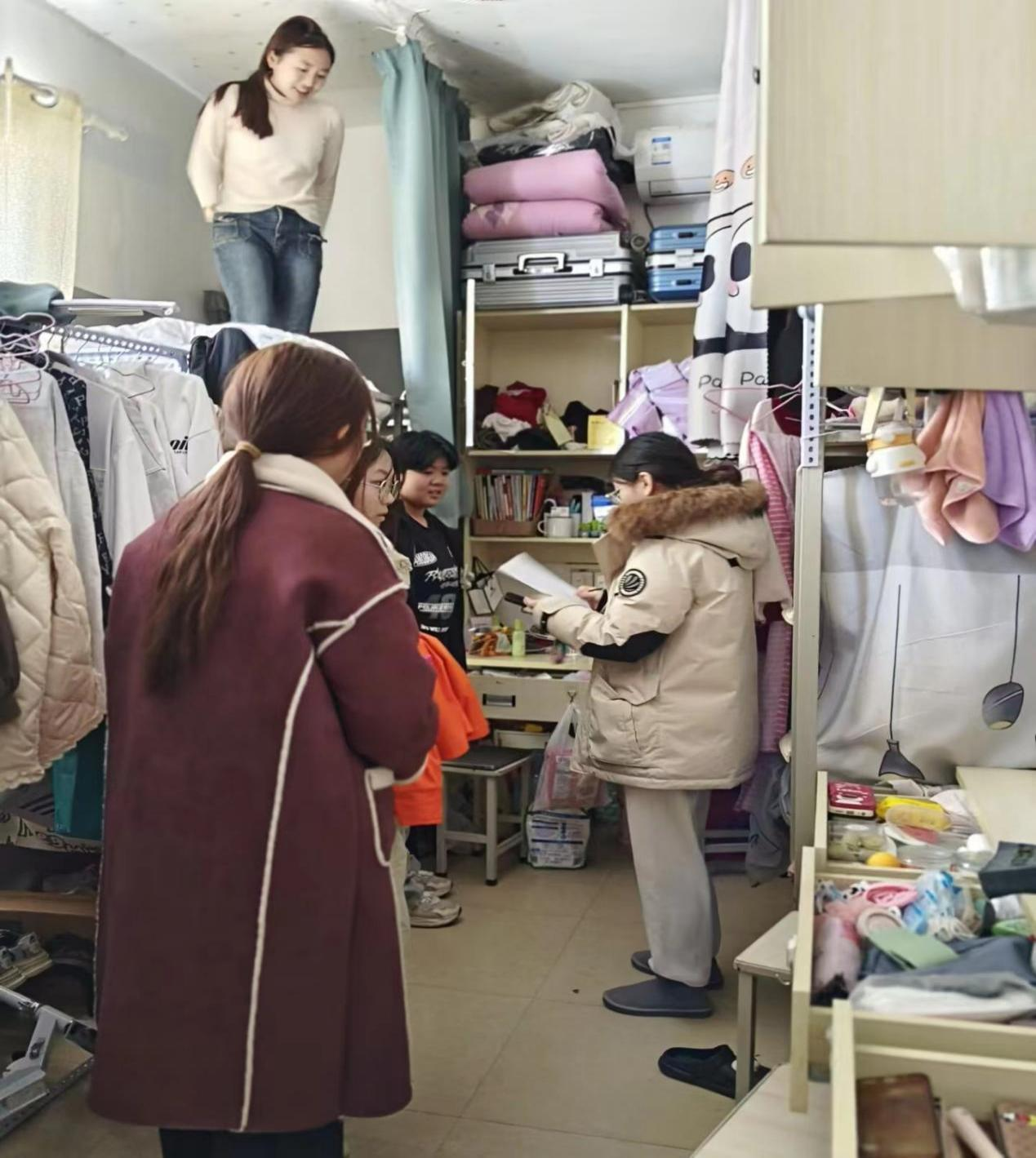 检查过程中,辅导员们就宿舍的消防安全、用电安全、卫生状况等情况进行了全面细致的排查,并重点检查了宿舍楼内的灭火器是否齐全有效,消防通道是否畅通无阻,电器使用是否合规安全等情况,并多次向同学们强调消防安全的重要性。同时,针对学生在日常生活中容易忽视的细节,如插座使用、电线摆放、电器使用等问题,给予了具体的要求和安全用电指导,并对发现的问题,进行及时记录和整改。此外,辅导员还特别叮嘱了寝室的卫生要保持清洁和床铺整理等方面要求,督促学生自觉维护宿舍的整洁和卫生,共同营造一个舒适的学习环境。