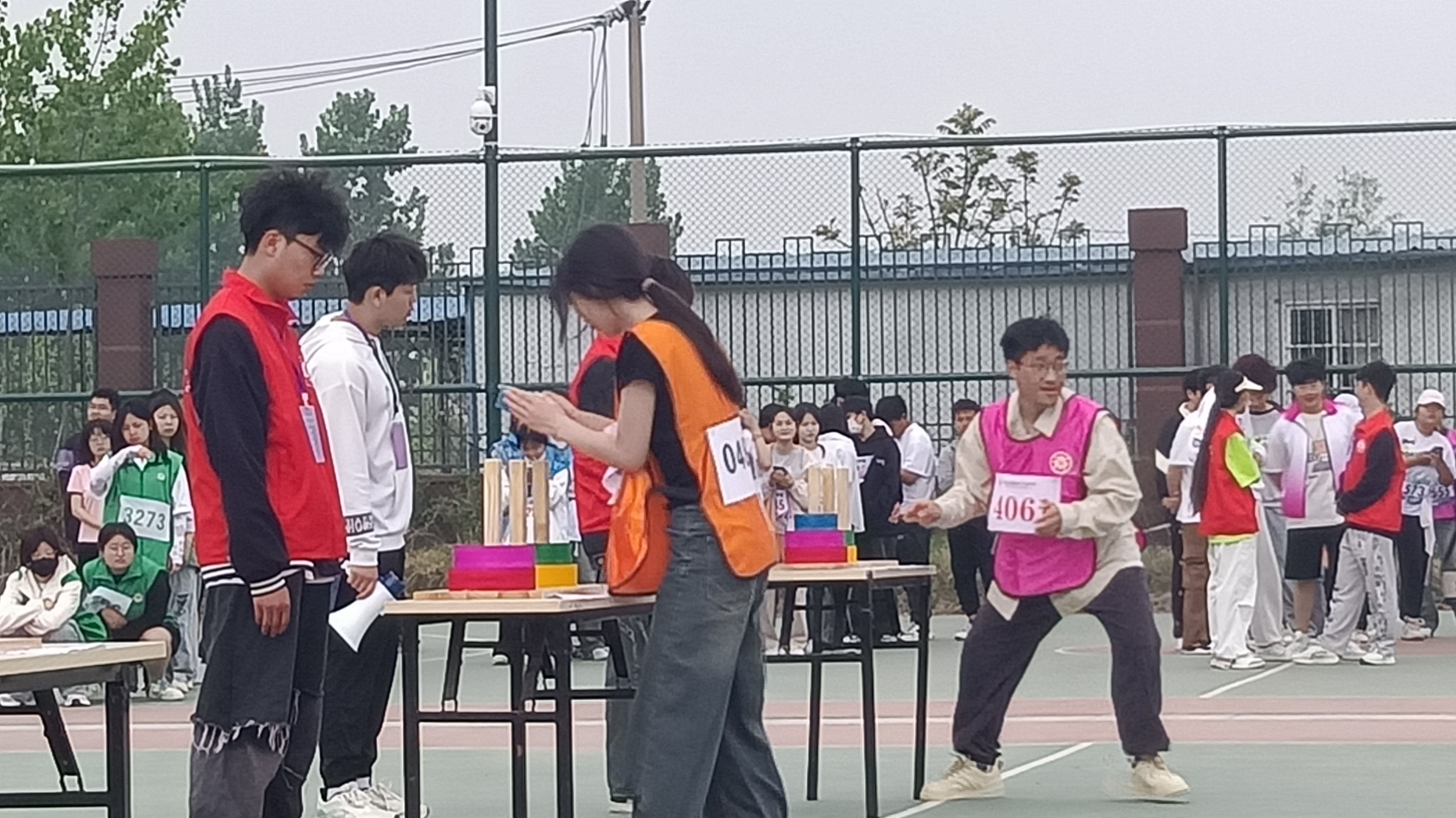 解锁团队默契,一起燃情团建。大型的竞技比赛中,自然也缺少不了趣味性的游戏,操场上一片欢乐--接力运球、汉诺塔接力、能量传输等趣味性比赛嗨翻全场。运动员们配合默契的打了一场又一场的精彩,我院教职工们倾情助力,将氛围顶置高潮!