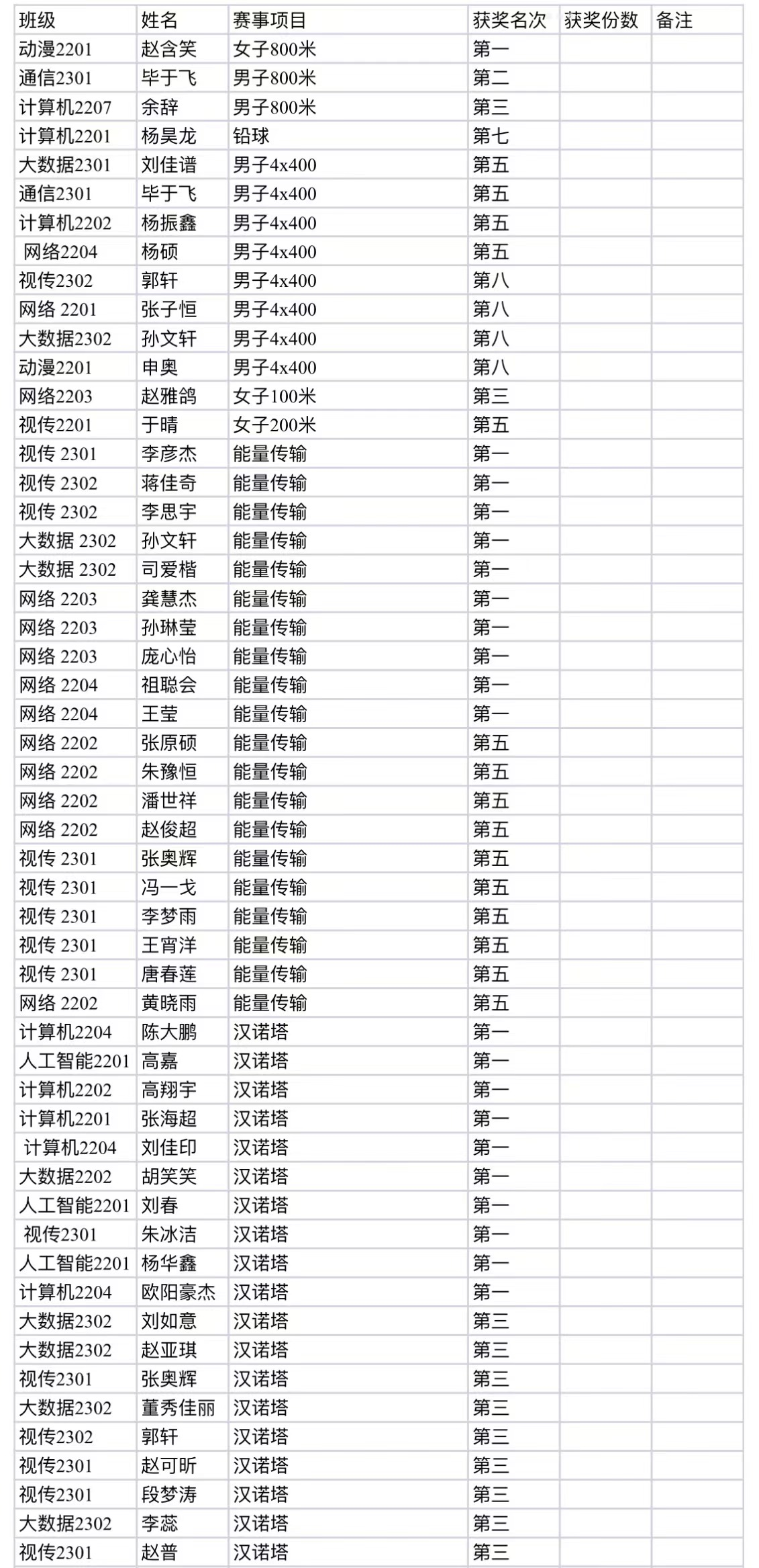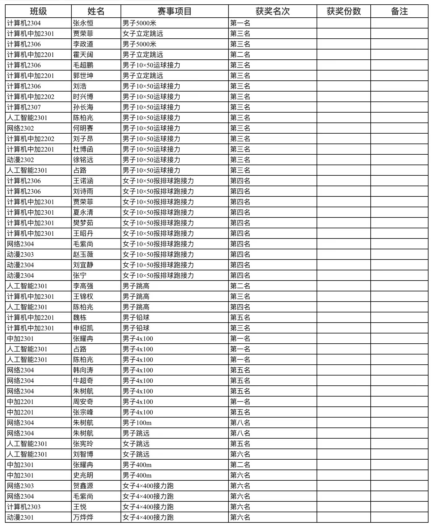 我们为所有获奖的运动员们表示热烈的祝贺,