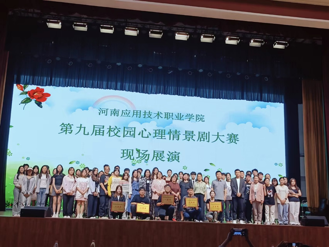 5月10日下午,由河南应用技术职业学院心理中心举办第九届心理情景剧大赛在学生活动中心顺利举行。我院参赛作品《雨后彩虹》从10个参赛作品中脱颖而出,赢得了在场评委及观众的高度认可和赞誉,荣获一等奖。