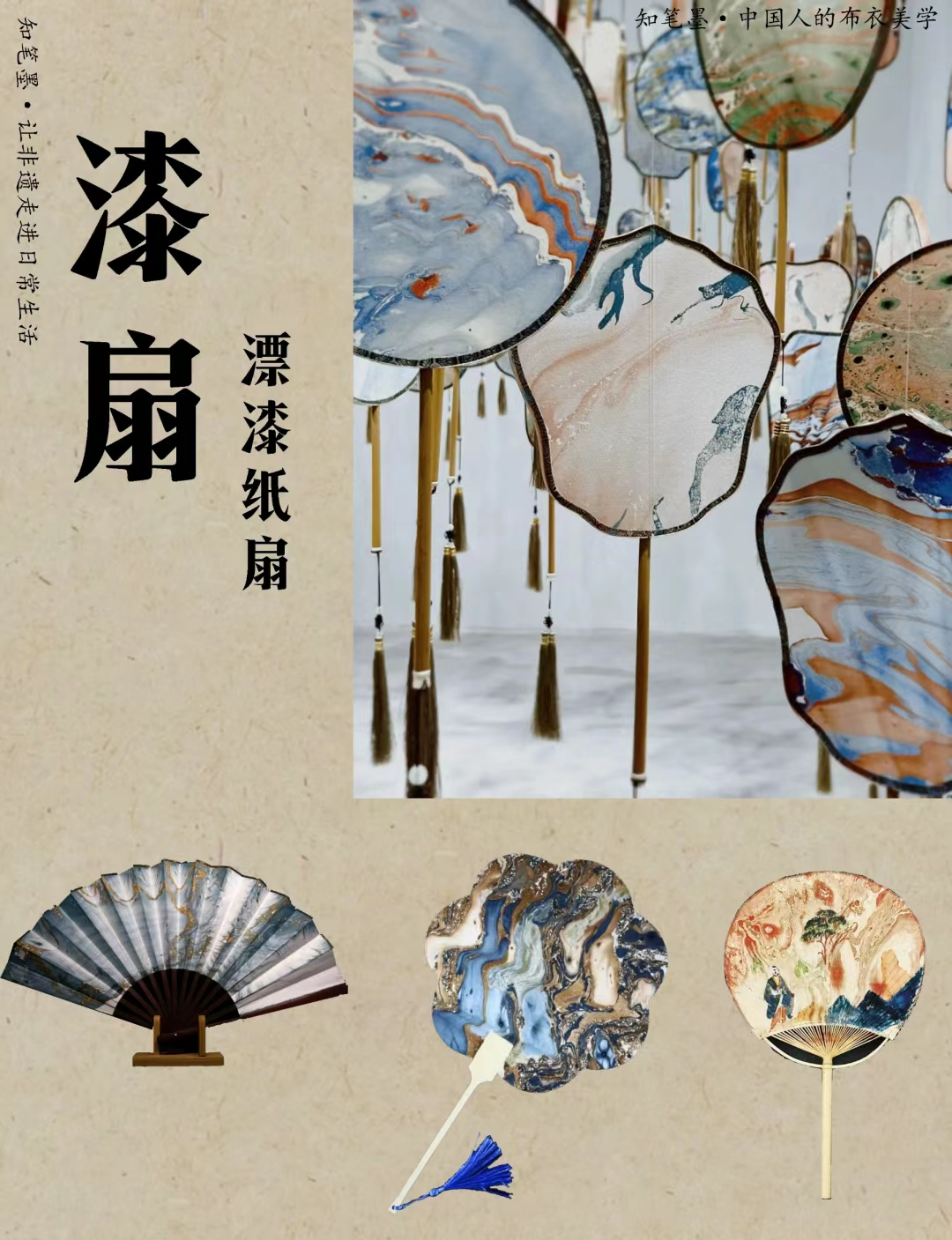 漆扇是中国传统工艺美术的一种表现形式,它将漆器工艺与扇子制作相结合,展现了中国的传统工艺美。漆扇承载了中国传统文化的美学理念,如流云变幻,尽显诗情画意之感。