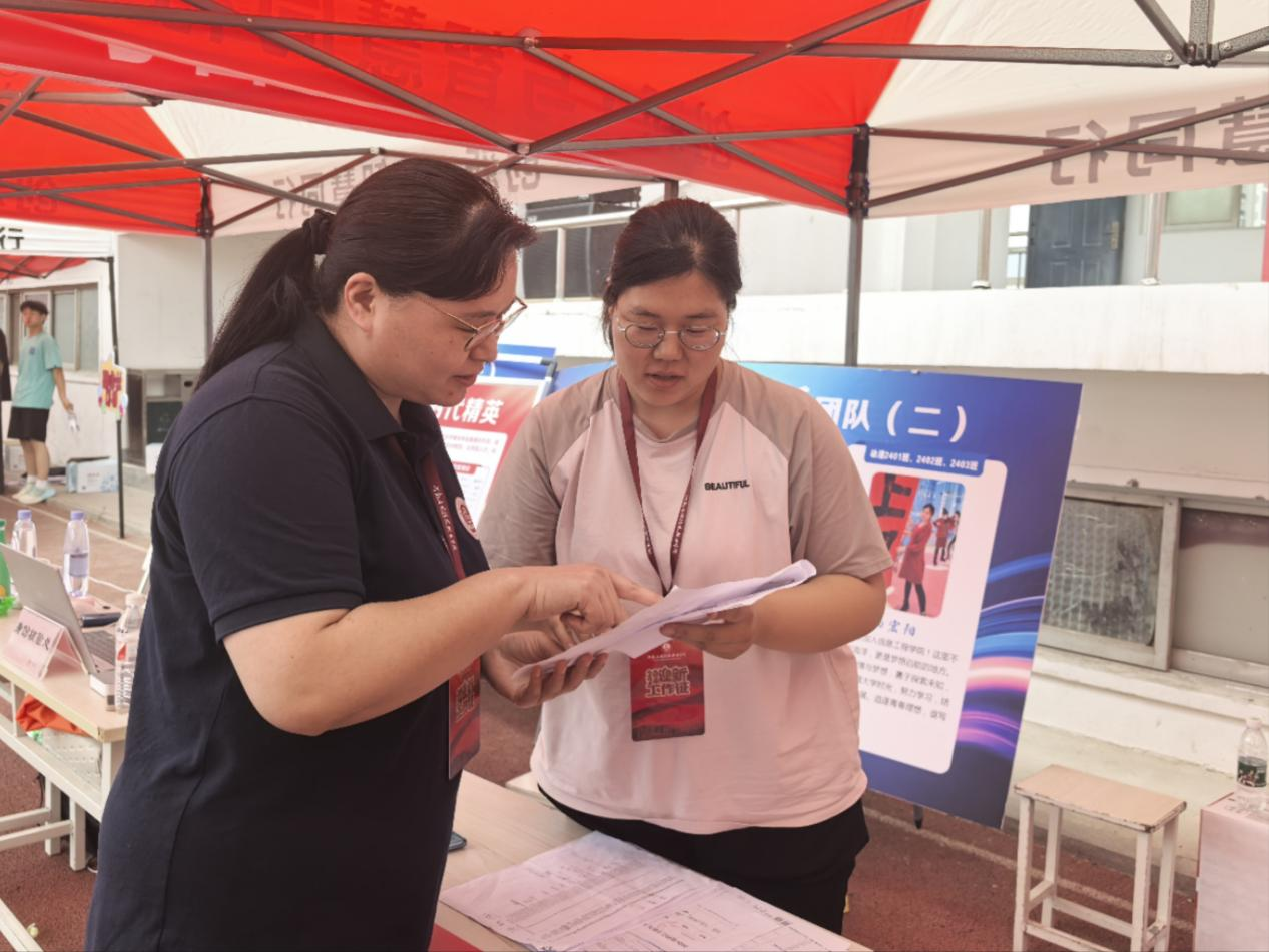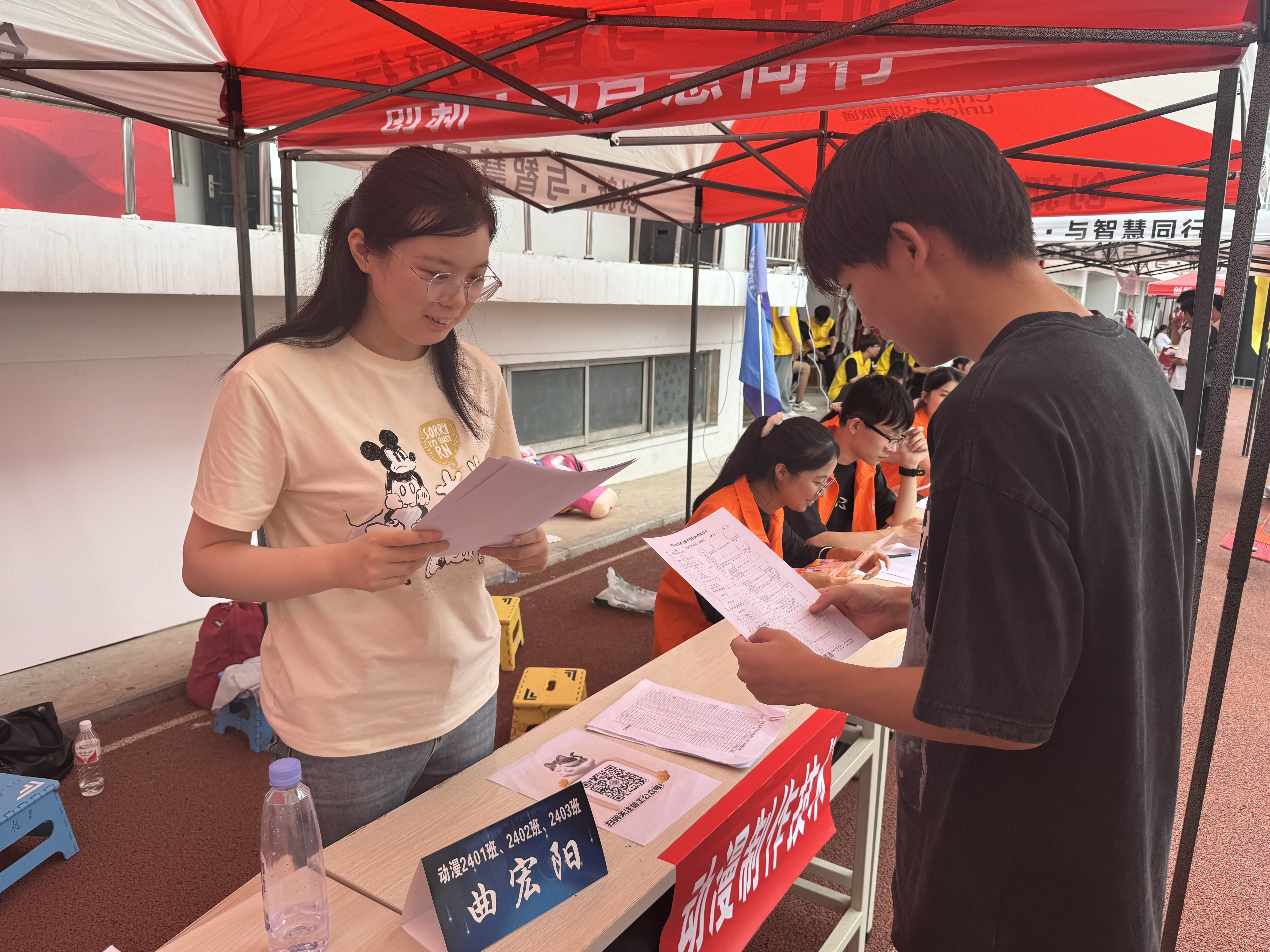 除党员志愿服务者之外,学院职工和其他志愿者们也一如既往坚守在志愿服务岗位上,活跃在迎新活动中,他们拧成“一股绳”,身着特色“文化衫”,战高温、斗酷暑、保安全,扎实有序开展各项重点工作,用汗水诠释着责任担当和奉献精神,为新生和家长入校做好服务保障。他们带领新同学办理报到,搬运行李,整理宿舍,介绍校园;为新生实时答疑解惑,分享校园生活,提供全面优化服务,有效缓解新生入学的紧张和焦虑,为即将入学的新生带来学院的温暖与祝福,让新生放心、家长舒心。