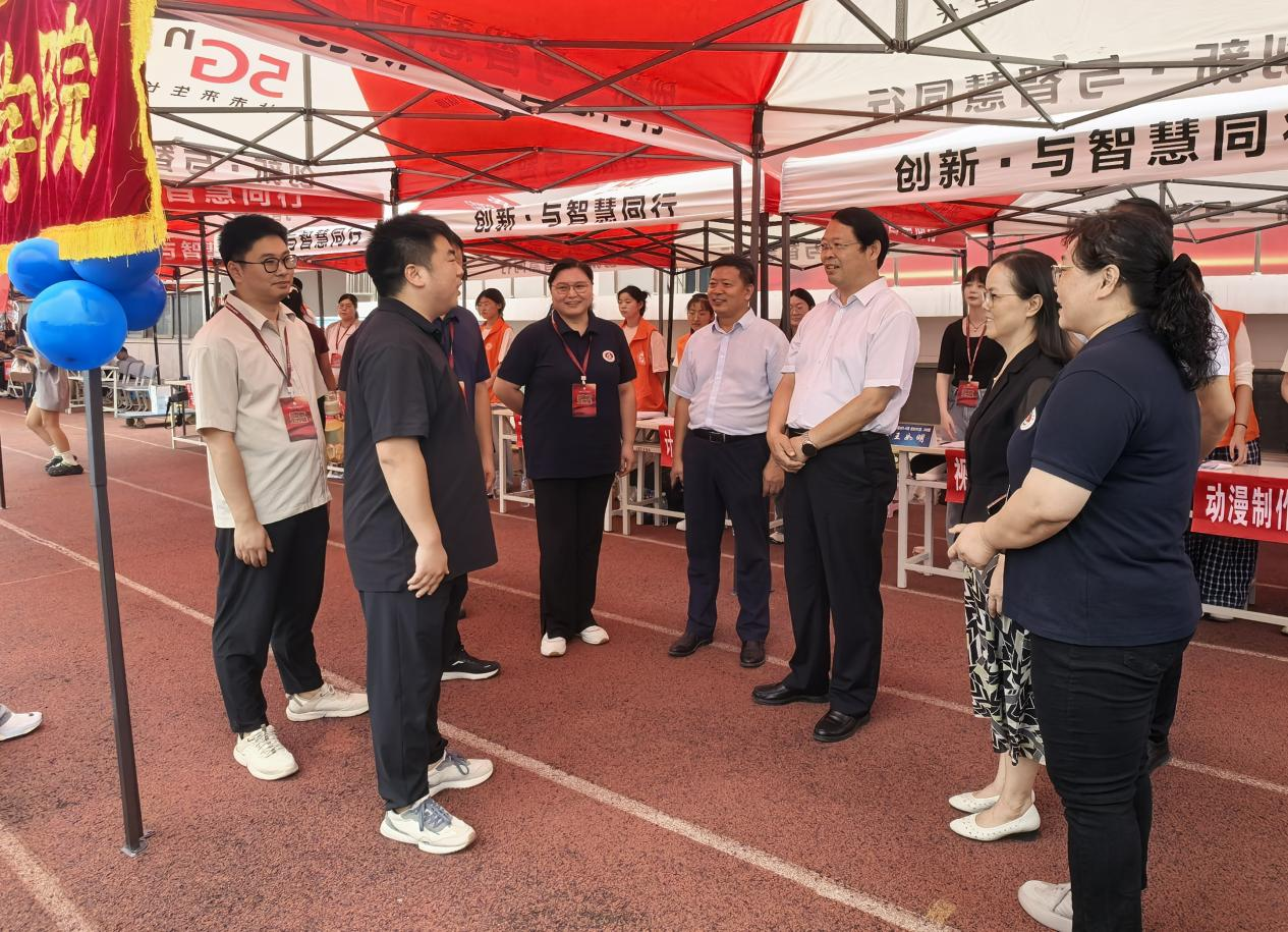 “从哪里来的?”“新生报到还顺利吗?”“欢迎来到应院”“天气炎热,注意防暑”,学校领导走访迎新现场时来到信息工程学院迎新点看望新生和家长,校党委书记闫俊山、校长薄新党询问了学院新生报到情况。并要求学院迎新工作要坚持“以学生为中心,让服务有温度”的工作理念,以人为本、关爱学生,让学生满意,让家长放心。希望新同学尽快融入信息工程学院大家庭,适应新环境、迎接新挑战,勇敢驰骋信息新征途。