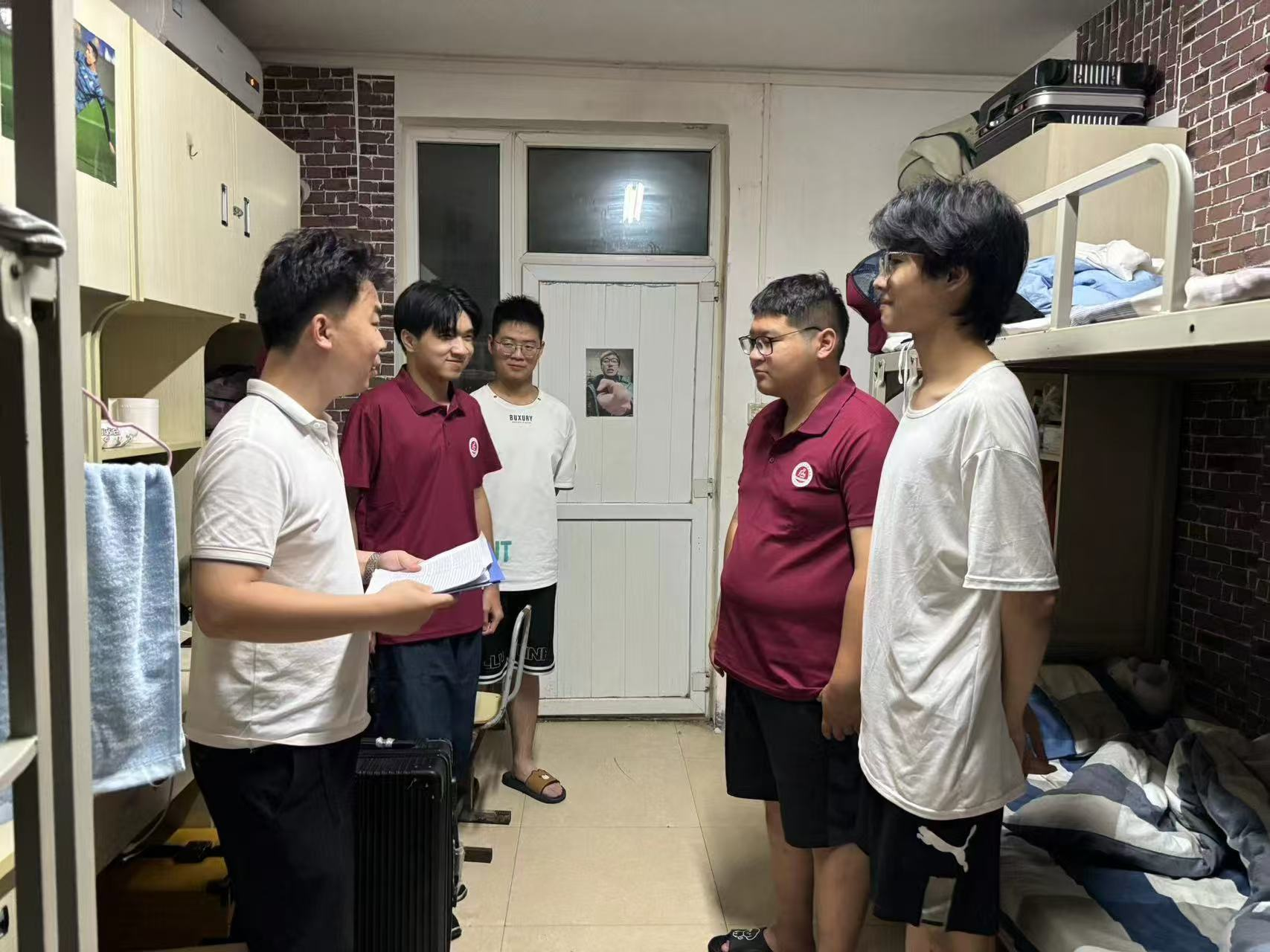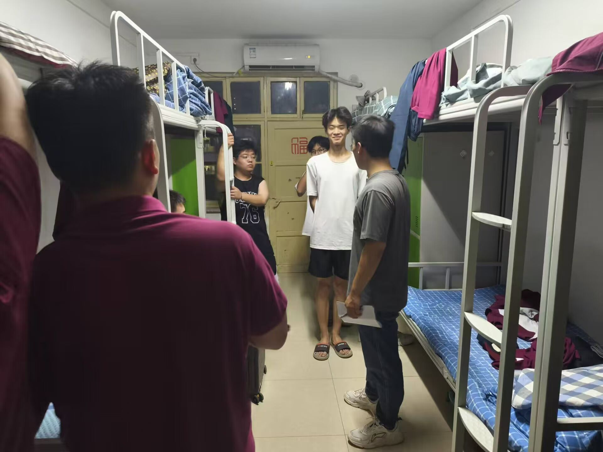 为掌握新生入校后的思想状况,加强宿舍安全管理,帮助新生尽快适应校园生活,营造安全、整洁、文明的宿舍环境,2024年9月8日晚上信息工程学院党总支书记崔琳、副书记蒋欣哲带领2024级辅导员对新生宿舍进行了全面检查。