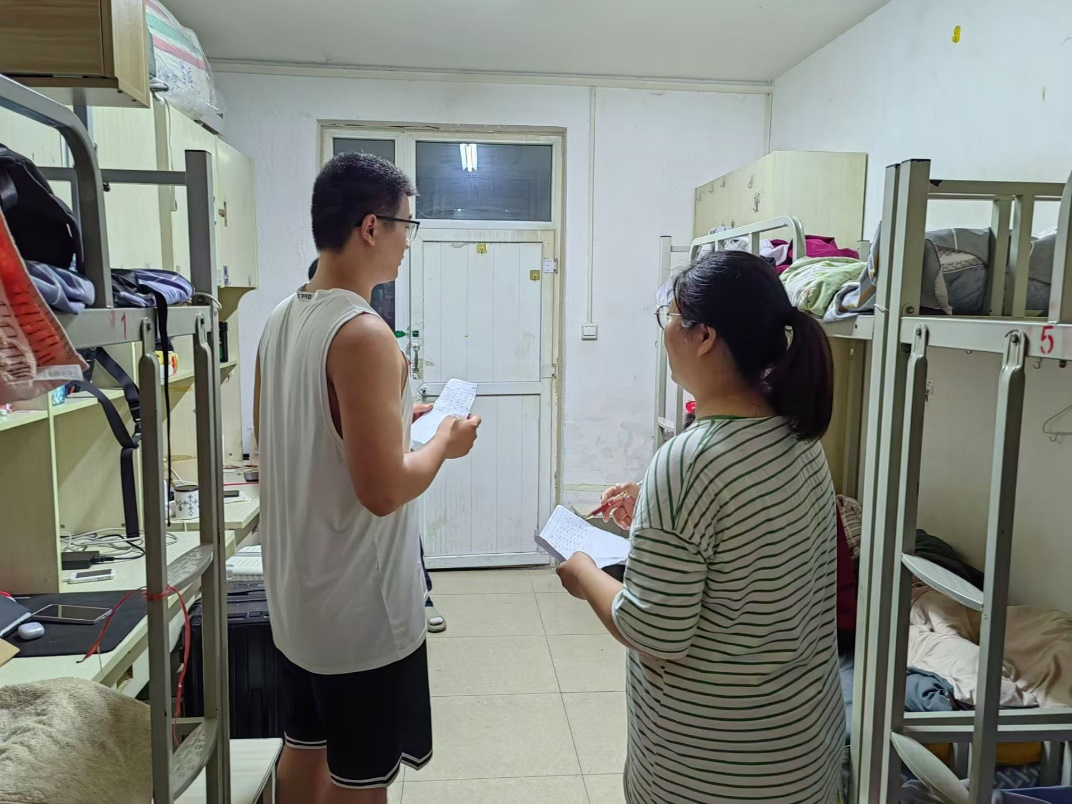 辅导员对新生宿舍的卫生状况、安全设施、物品摆放等方面进行了细致的检查。