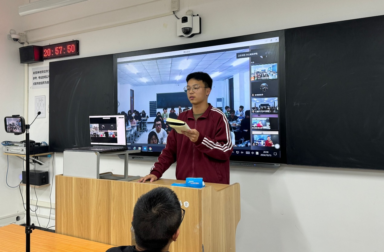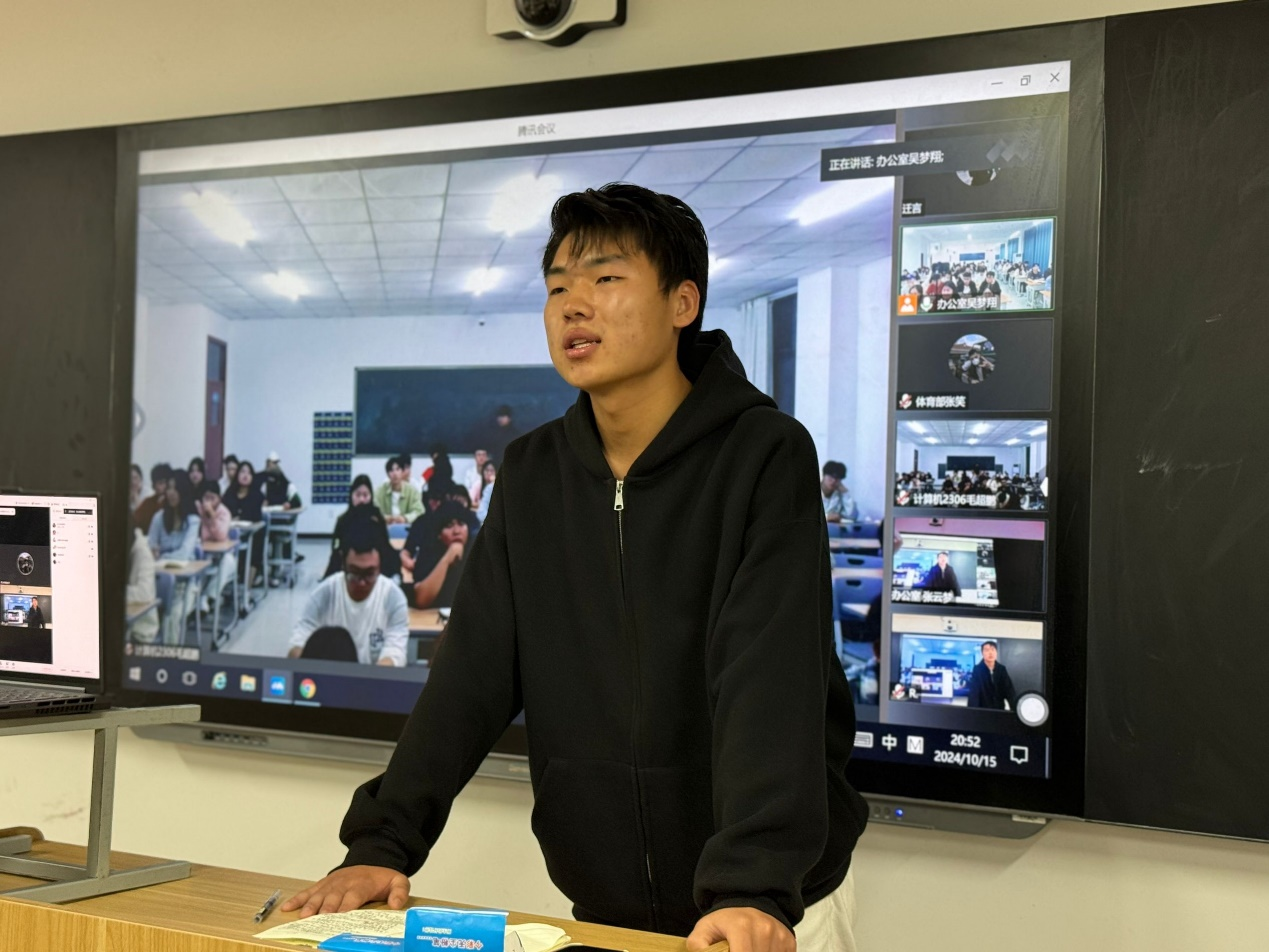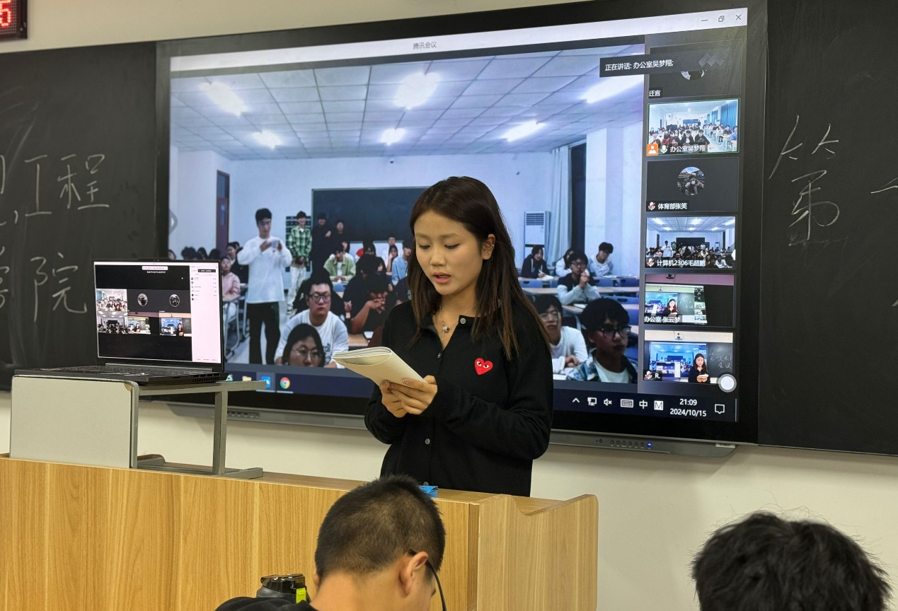 博观而约取,厚积而薄发。为有序推进学生会工作开展,提高学生会成员综合素养,帮助新成员尽快融入学生会大家庭,2024年10月15日晚,信息工程学院于开封校区F410开展学生会周例会,郑州校区于教室SC302同步开展线上会议,团总支书记冷月、学工办主任常昆、23级主席团、各部门部长、副部长及23级部员、24级部员参会。