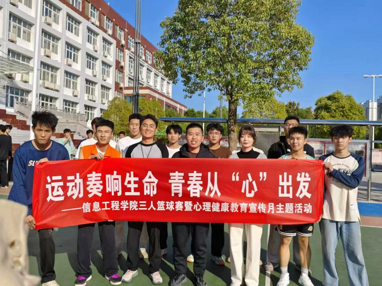 强健的体魄、阳光的心态,是青年成长成才的重要前提。为深入学习贯彻党的二十大精神,贯彻落实习近平总书记关于加强学生心理健康教育工作的重要指示批示精神,进一步提升我院心理育人工作质量,提升大学生心理健康水平,信息工程学院于10月23日-10月24日分别于开封校区和郑州校区举办了“运动奏响生命 青春从‘心’出发”篮球赛暨心理健康教育宣传月主题活动。