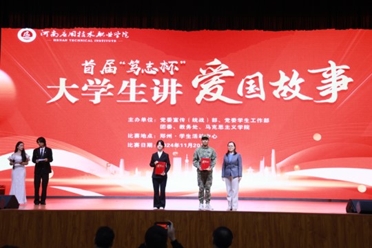 11月20日,河南应用技术职业学院首届“笃志杯”大学生讲爱国故事比赛在郑州校区活动中心大礼堂拉开帷幕,我院参赛队伍凭借《挺膺担当,强国有我》以超燃的表现、优异的成绩强势登顶!