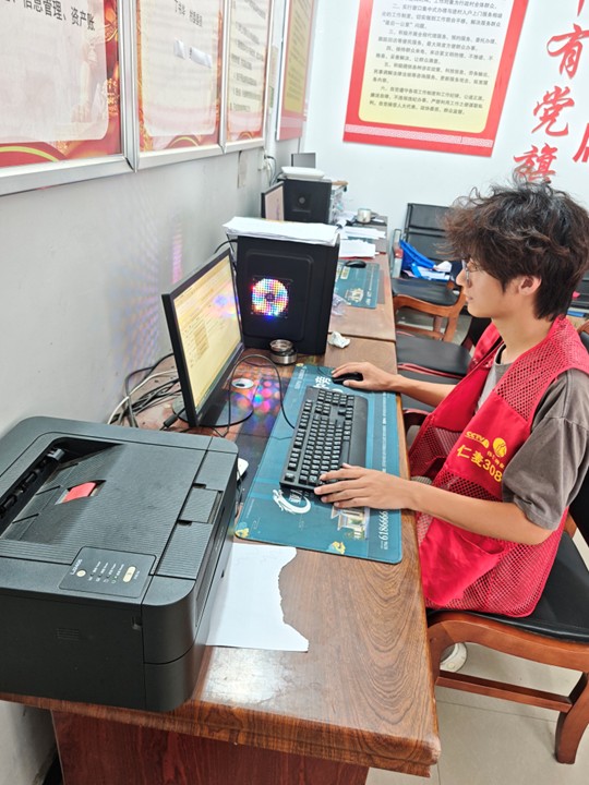 初到村委会办公室,等待我的是居民信息录入、资料归档、数据集算等一系列看似琐碎却容不得半点马虎的任务。面对繁杂的事务,起初我难免有些手忙脚乱,但凭借专业知识积累,加上村支书和其他村干部手把手的指导,很快便理清了工作思路,从生疏到熟练,逐步融入了基层工作节奏。