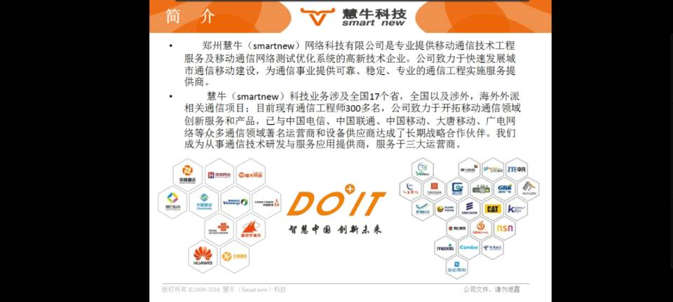 郑州慧牛网络科技有限公司座落于华夏文明的发祥地郑州,该公司成立于2016年,办公面积达600平方米,是一家专业提供移动通信技术工程服务及移动通信网络测试优化系统的高新技术企业,公司致力于快速发展城市通信移动建设,为通信事业提供可靠、稳定、专业的通信工程实施服务提供商,并积极推进高校毕业生就业见习工作,促进更多毕业生通过见习实现就业创业。