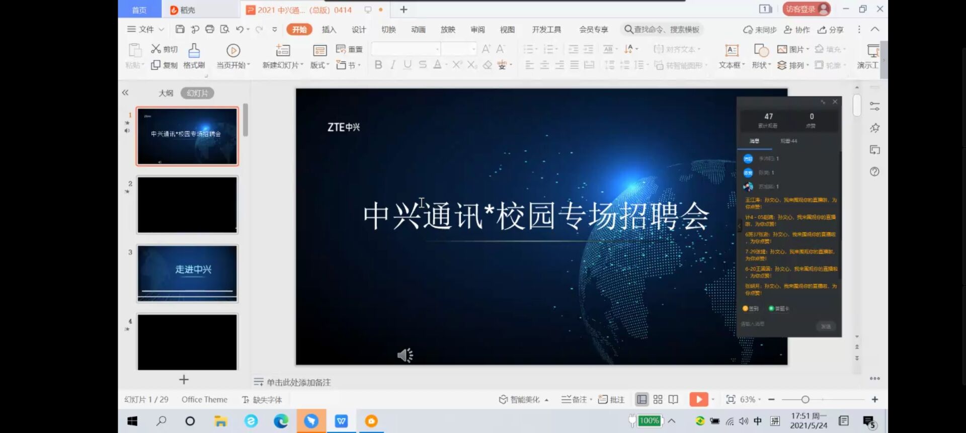 中兴通讯股份有限公司孙经理和郑州肯德基有限公司李经理通过PPT展示、云面对面交流等方式向同学们介绍了公司的概况、职业发展、企业前景、人员需求以及选择该企业的理由,让我院的同学们在关心薪资前景的同时更为详细的咨询了合同签订的相关事宜,少了些盲目,多了些理性。整场宣讲会同学们都认真聆听,并积极参与了互动,宣讲会的最后是提问沟通环节,两位企业的经理热情仔细地回答了同学们提出的问题,解除了大家心中的疑惑。