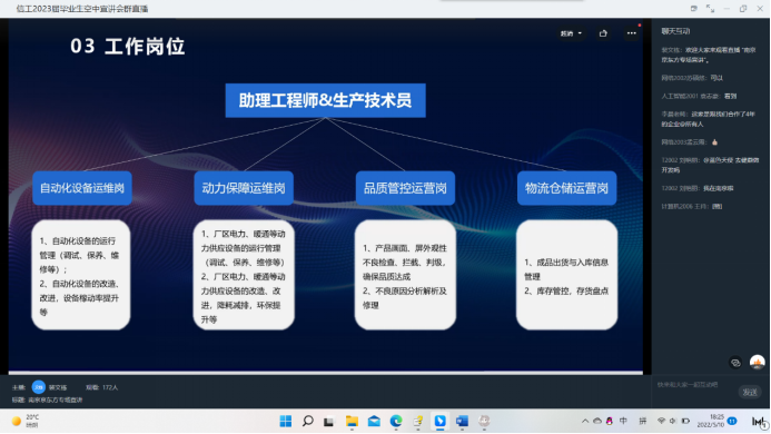 为切实做好信息工程学院2023届毕业生顶岗实习和就业工作,有效帮助同学们在疫情期间能够及时地获取求职信息,我院特推出“专场空中宣讲会”,为实习生提供更多的求职机会。
