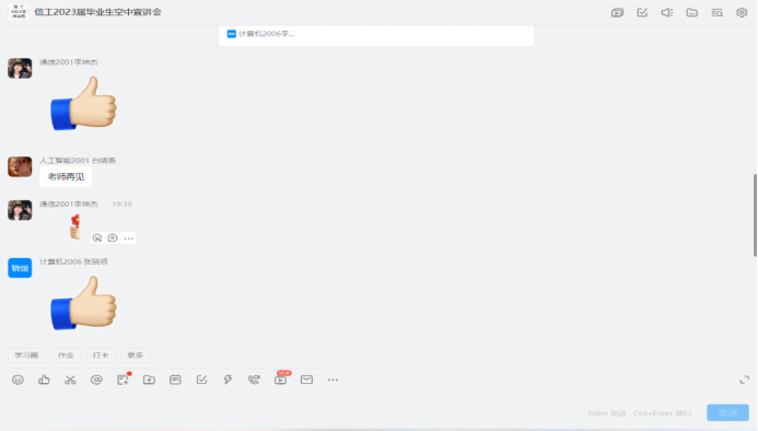 接着,她向同学们分析了当前5G和新基建产业布局下诞生的新职业,并提出市场对互联网人才的需求上升。随后,结合具体案例对中小型IT互联网企业招聘要求进行介绍,勉励毕业生们无论选择哪一种毕业去向,都要尽早准备,全力以赴。与此同时,她还就毕业生们关心的简历制作和面试技巧等方面问题进行了详细解答,同学们细心听讲,积极配合,和老师热情互动,并提出相关疑问,吴老师也耐心详细的为同学们解答。此次讲座干货满满,结束后同学们纷纷为吴老师点赞。